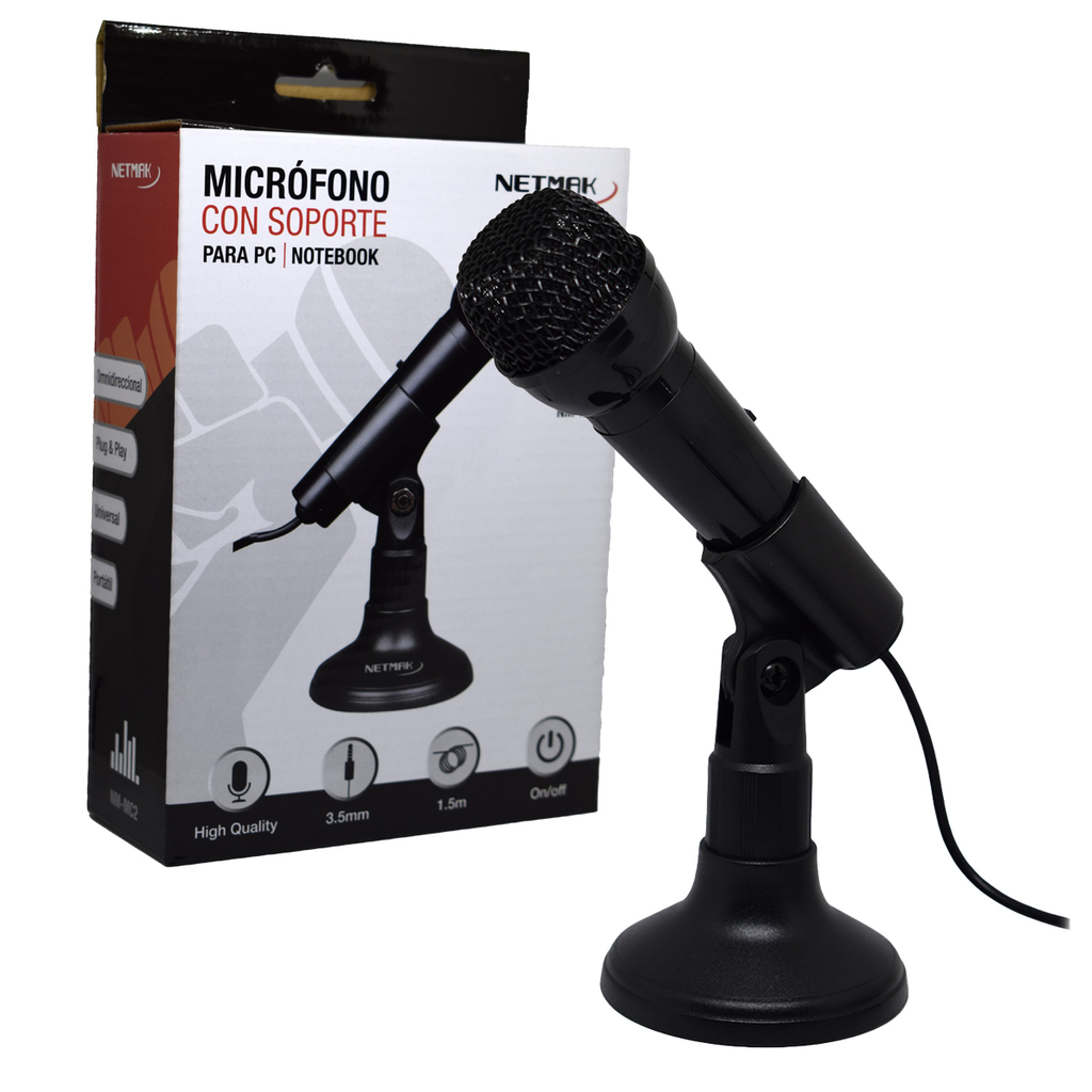 Mejora la calidad de tu audio con el Netmak MC2. Su patrón de captura omnidireccional y su práctico soporte de escritorio lo hacen perfecto para empezar a crear contenido o para comunicarte con total claridad.