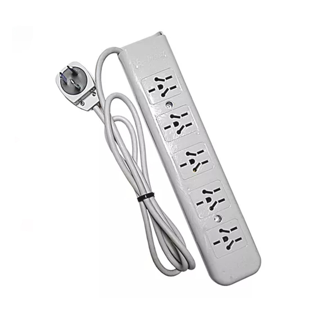 Zapatilla eléctrica de 5 tomas con un interruptor de encendido/apagado general con luz indicadora.